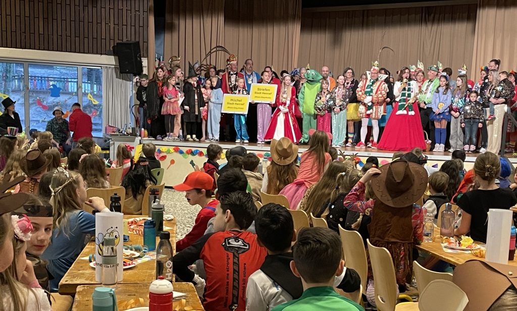Die Aula wurde toll geschmückt, die Stimmung war grandios! Besonders haben wir uns über das Kinderprinzenpaar gefreut, das zusammen mit dem Prinzenpaar und dem ganzen Gefolge zu uns gekommen ist. Aber auch unsere Kinder haben tolle Darbietungen auf der Bühne gezeigt. Wir freuen uns schon auf das nächste Jahr, wenn es wieder heißt: