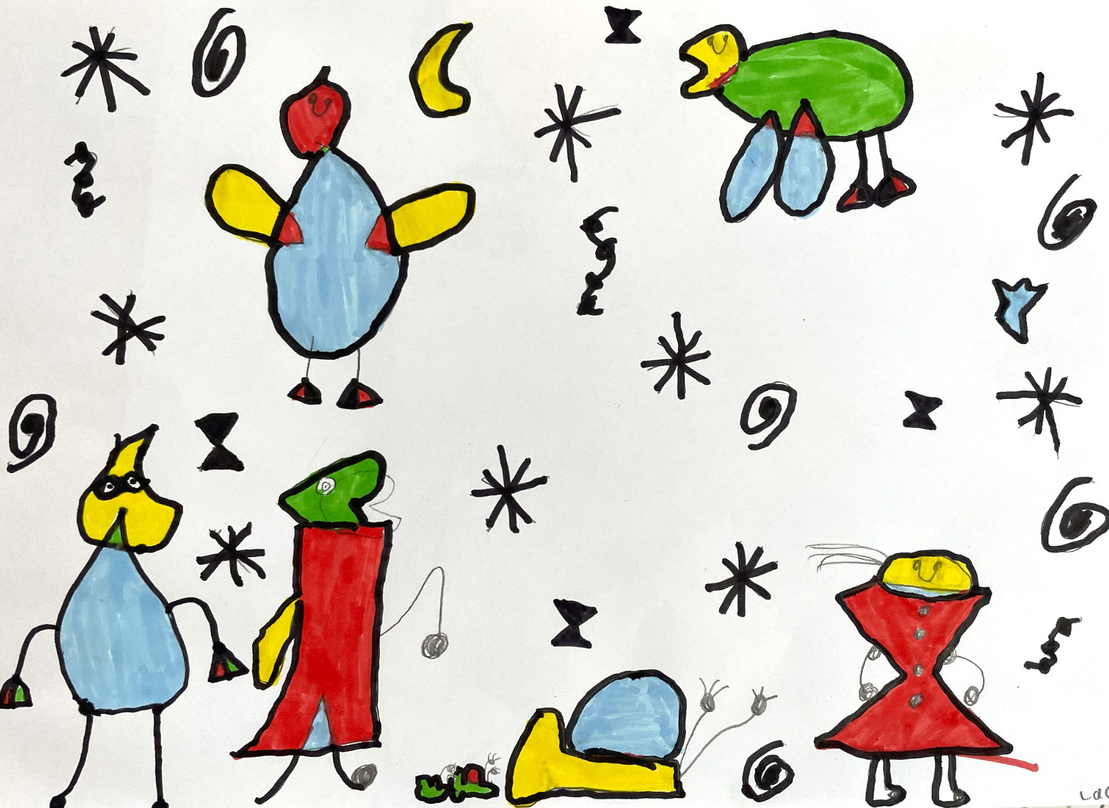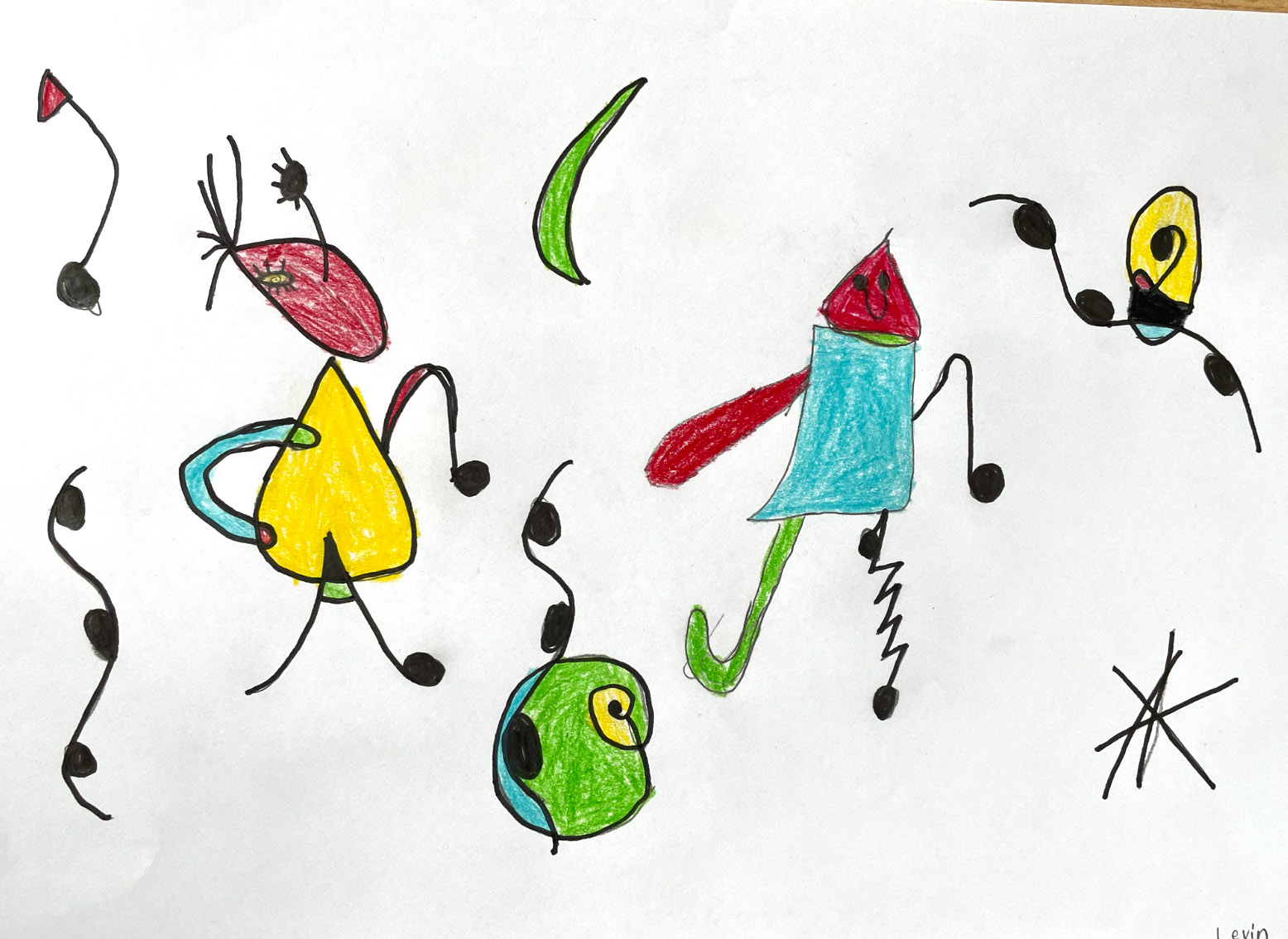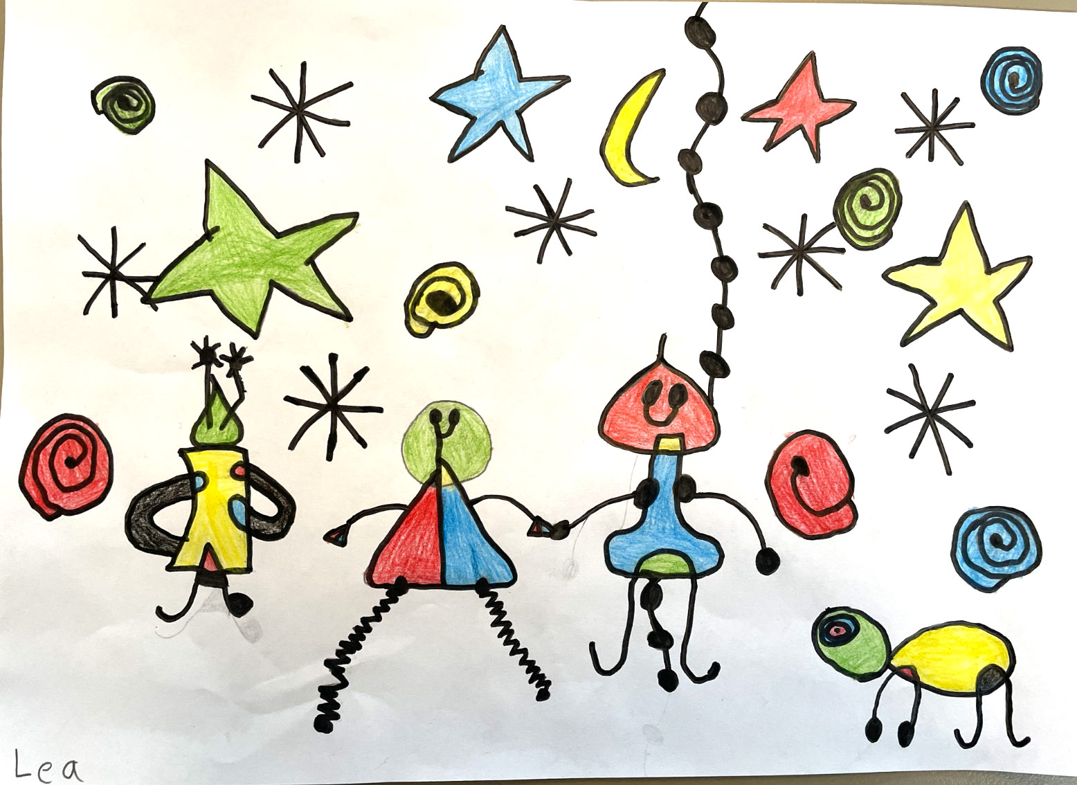 Nun haben sie Bilder gemalt, die fast so aussehen, wie die Bilder von Joan Miro;-) Schaut sie euch doch einmal an! Es sind ganz tolle Kunstwerke entstanden!